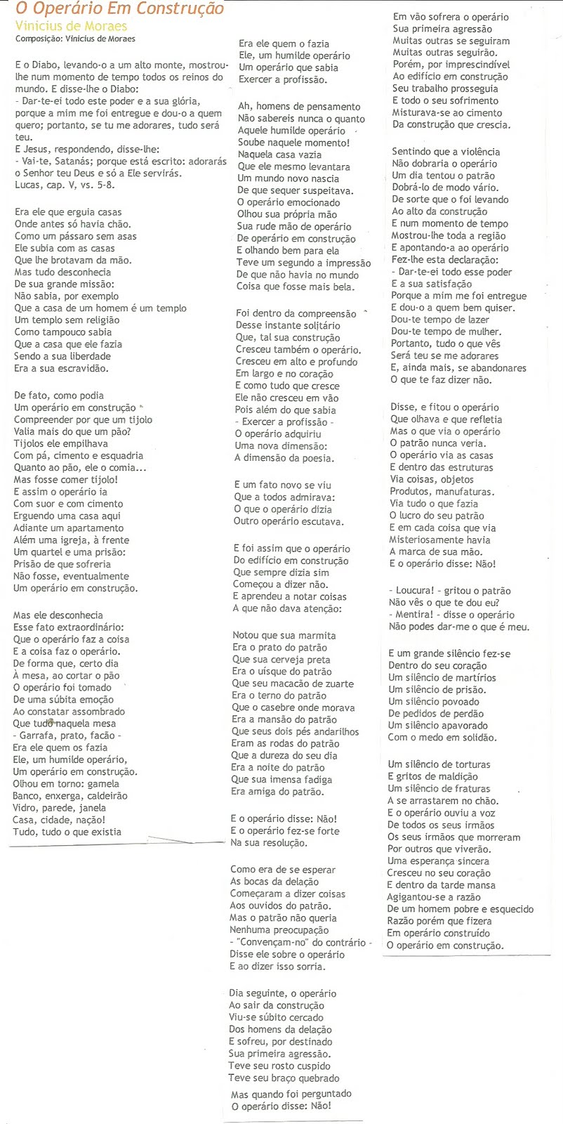 O pedreiro cheira a cal/ O carpinteiro à madeira/ Cada qual com seu ofício/ Eu também sou lavadeira.